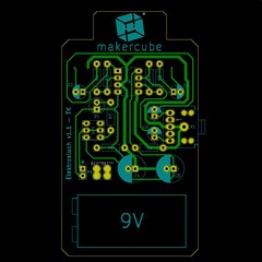 After a prototype built by another member on protoboard, I started development of the actual workshop kit materials, which meant developing a pcb (printed circuit board), creating a bill of materials, help source electronic components, and creating any printed material (instruction sheet). Kits were also sold as stand alone project kits that anyone could assemble provided they had a soldering iron.
