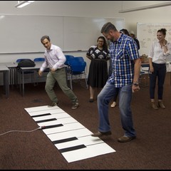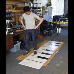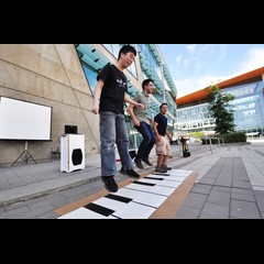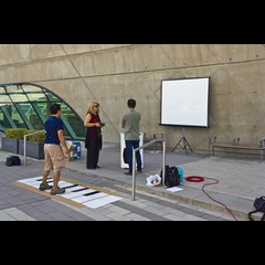 The “Compose the Space” project was pitched to SFU as part of their SFU Student-Community Engagement competition. Being an SFU graduate myself and while working with Marc St Pierre, an SFU student it was suggested that we put in an entry for this competition. A third artist, Karen Cancino was part of the core team as well. After going through a few concepts, we settled on an idea of putting a large playable piano mat as an art installation in a community space.