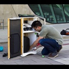 Building and testing various parts of the installation. To help with this part, enlisted the help of another member, Doug Chan from MakerCube. We ended up learning a lot of painting of all things.